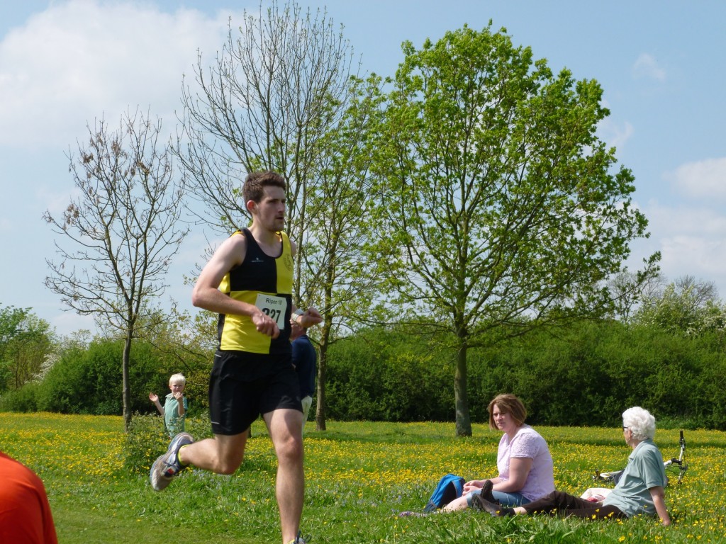 After a 5 minute walk to the start line the race got underway on time without too much fuss. Although the start is the same as December’s “Jolly Holly Jog”, the fields couldn’t be further from the squelchy mud fest we’re used to. They were blooming with flowers and butterflies, and a splattering of supporters had come to the start line to cheer us on as we dodged the nettles and jostled for position.