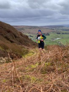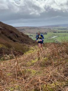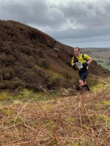 This very tough 15 mile , category AL ( i.e lots of ascent and long ) race began at Chop Gate, with an initial climb to the North Yorkshire Moor’s highest point at Round Hill, then along the Cleveland Way to Clay Bank , Wainstones , the viewpoint at Stone Seat and Carlton Bank with various diversions to checkpoints down below the bank which resulted in a lot of up’n’down exertion.